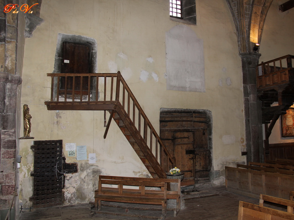 Au début du XXème siècle, l'un des curés de Névache fit démolir une partie de l'estrade car pour aller sonner les cloches, il devait monter par un escalier qui se trouve à l'autre extrémité et cela l'obligeait à parcourir un trajet assez long. Ainsi il fit mettre une échelle pour grimper directement dans le clocher… Pierre ne croit pas à cette explication car n'importe quel charpentier pouvait facilement modifier l'estrade pour y rajouter une échelle, il n'y aurait eu qu'une trémies de deux mètres de long.