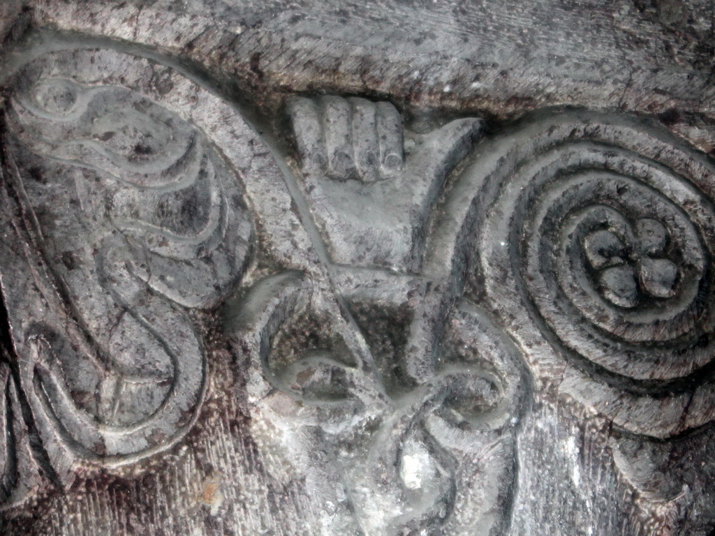 Personne n'a compris ce que pouvait représenter cette main sculptée sur le pilier gauche du choeur, beaucoup ont cherché un signe de reconnaissance entre Vaudois ou entre Protestants. Si cela avait été le cas, cette "main" aurait représentée un danger pour les deux communautés oeuvrant en ce lieu...